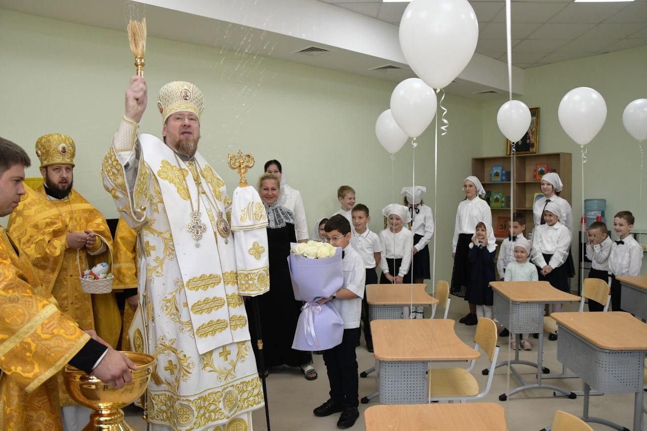 Первый урок детской воскресной школы посетил митрополит Донецкий и Мариупольский Владимир который освятил учебное помещение, окропив его святой водой и испросив Божьего благословения на все благие начинания.